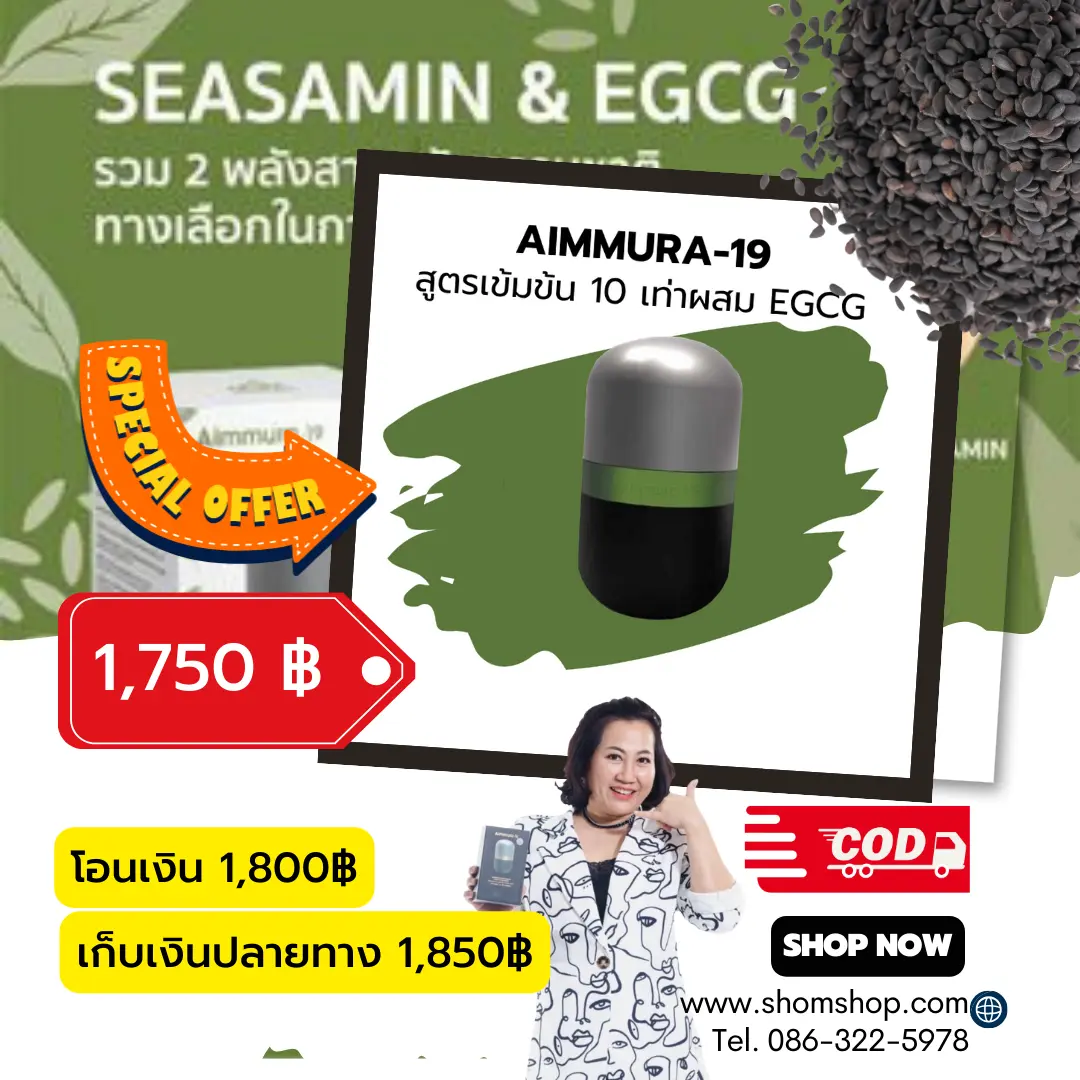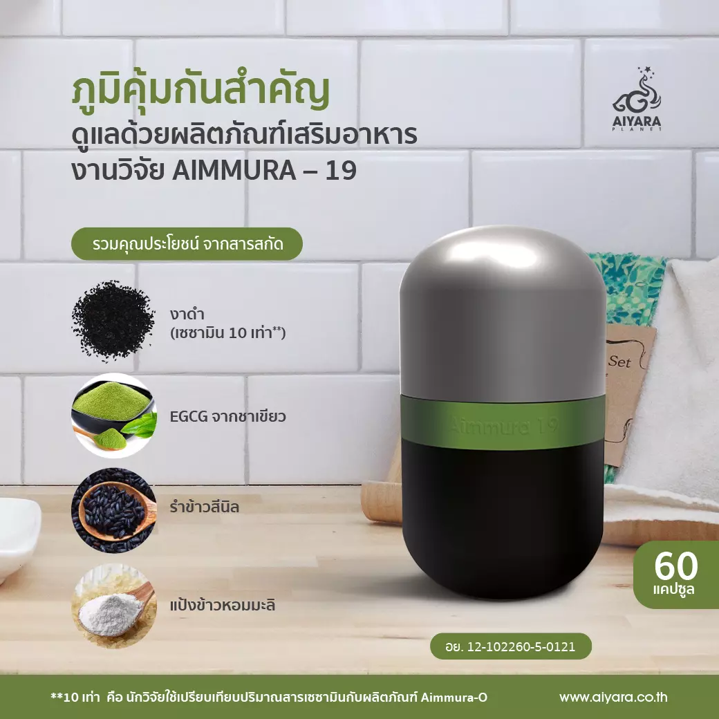 ขอแนะนำ AIMMURA-19 (เอมมูร่า-19) ผลิตภัณฑ์เสริมอาหารสูตรพรีเมียมล่าสุดจาก ศ.ดร.ปรัชญา คงทวีเลิศ ที่ไม่ได้มีดีแค่เซซามิน แต่คือการผนึกกำลังของสารสกัดธรรมชาติระดับโมเลกุล เพื่อดูแลคุณในระดับเซลล์