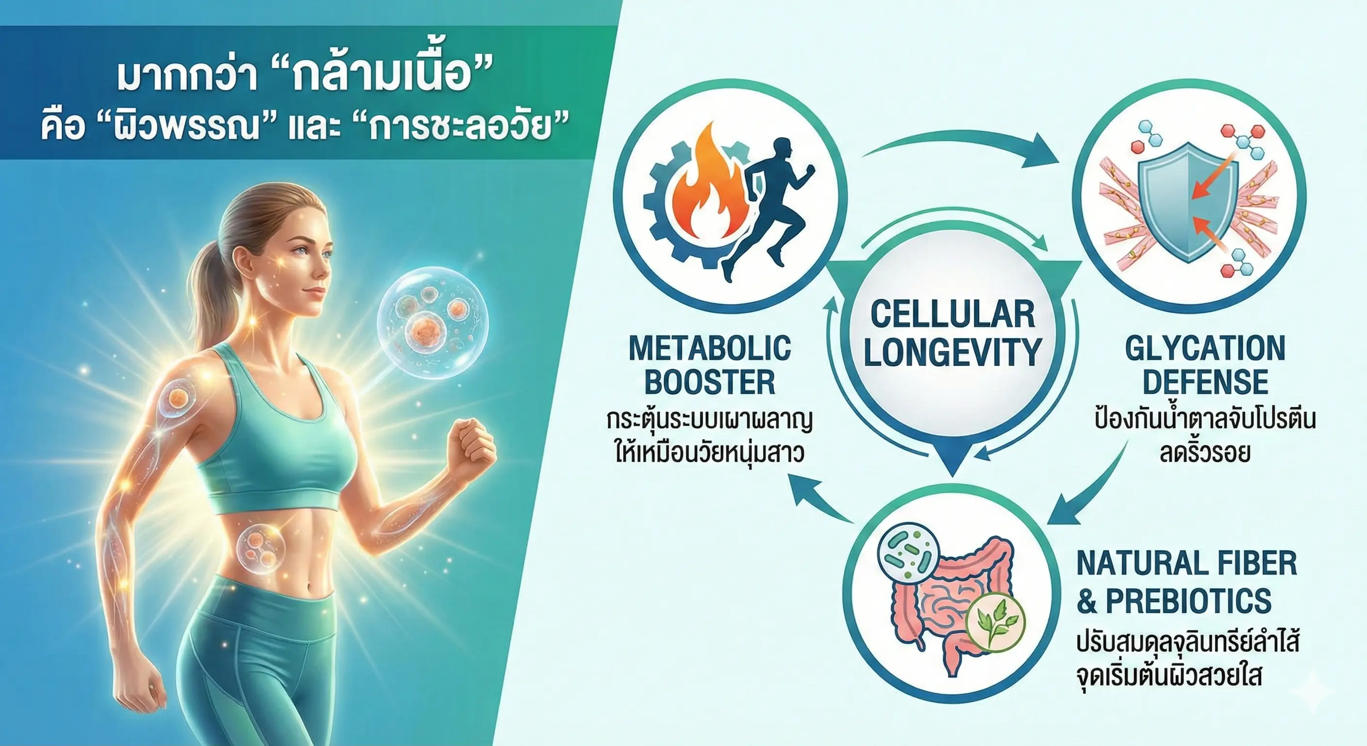 3. มากกว่า "กล้ามเนื้อ" คือ "ผิวพรรณ" และ "การชะลอวัย"