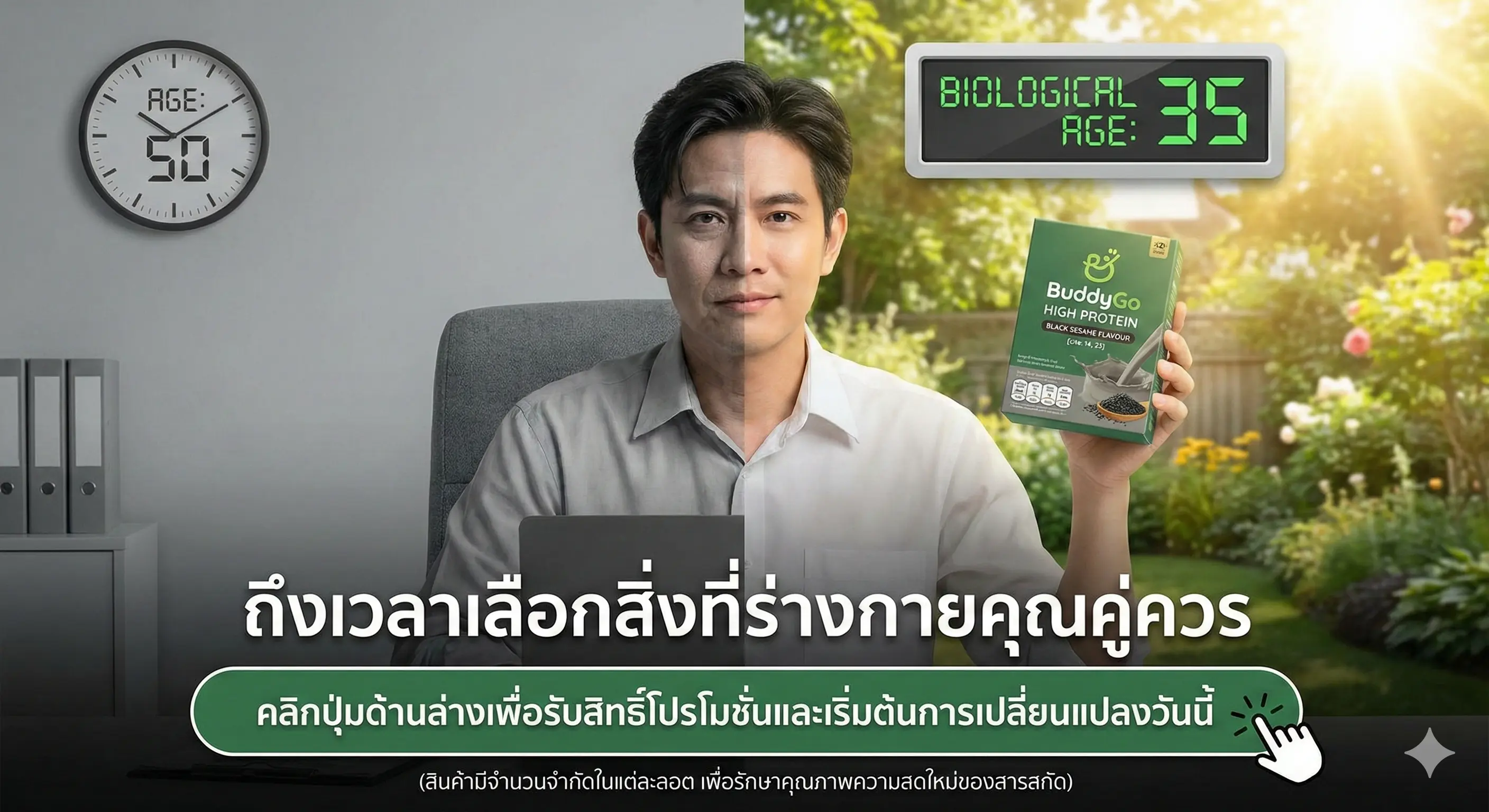 อายุเป็นเพียงตัวเลข แต่ "อายุชีวภาพ" (Biological Age) คุณกำหนดเองได้ อย่าปล่อยให้ความชราและโรคร้ายมาพรากความมั่นใจไปจากคุณ เปลี่ยนมาใช้โปรตีนพืชสูตรนวัตกรรมที่จะเปลี่ยนคุณเป็นคนใหม่ที่สดใสและแข็งแรงกว่าเดิม