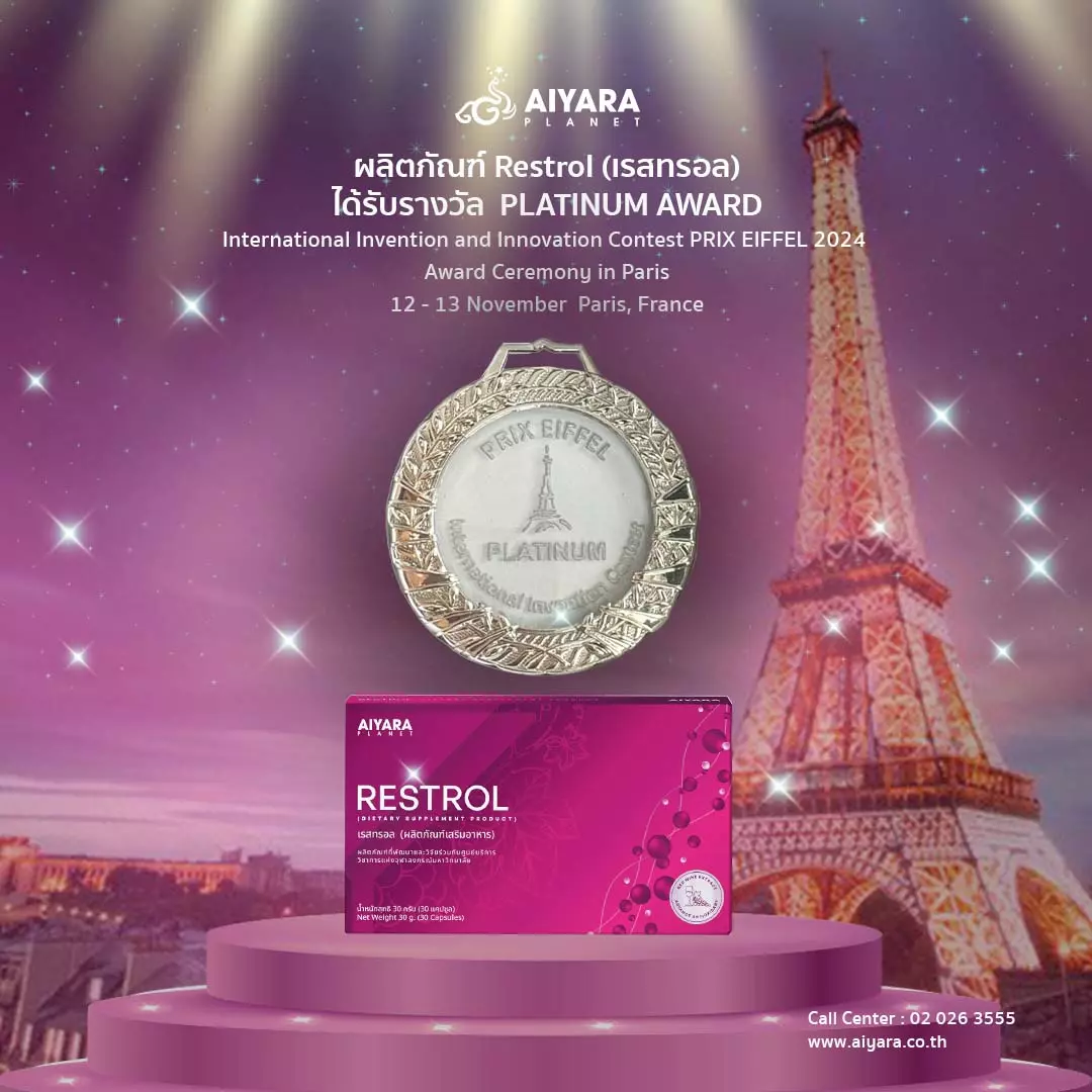 ความน่าเชื่อถือคือหัวใจของผลิตภัณฑ์สุขภาพ และ Restrol ได้พิสูจน์ตัวเองในเวทีระดับโลก ด้วยการคว้า รางวัล Platinum Award (รางวัลสูงสุด) จากการประกวดนวัตกรรมและสิ่งประดิษฐ์นานาชาติ PRIX EIFFEL 2024 ณ กรุงปารีส ประเทศฝรั่งเศส เมื่อวันที่ 12-13 พฤศจิกายน 2024