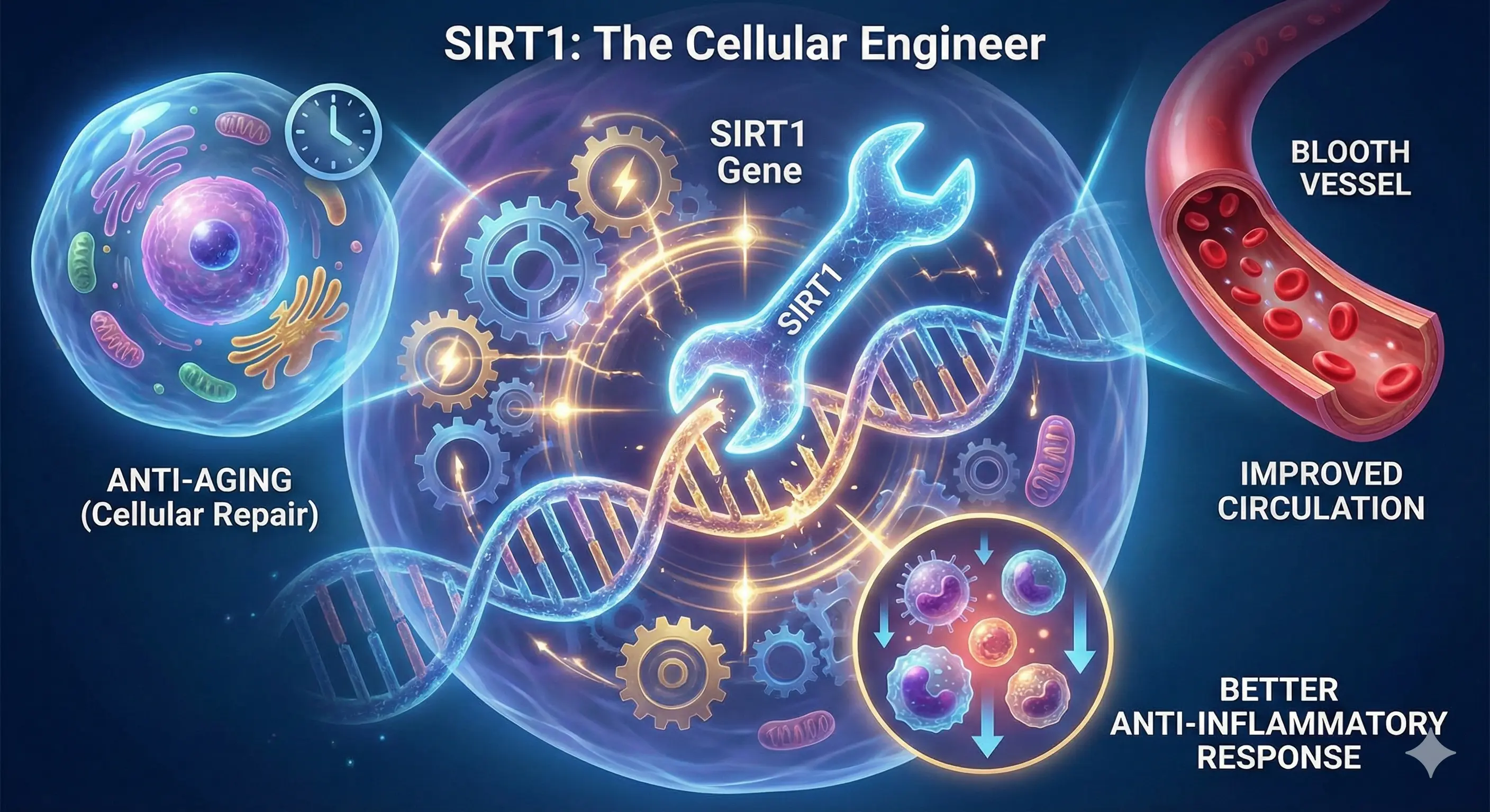 ยีนตัวนี้เปรียบเสมือน “วิศวกรประจำเซลล์” ที่คอยซ่อมแซม DNA และดูแลระบบเผาผลาญ เมื่อยีนตัวนี้ทำงานได้ดีขึ้น: