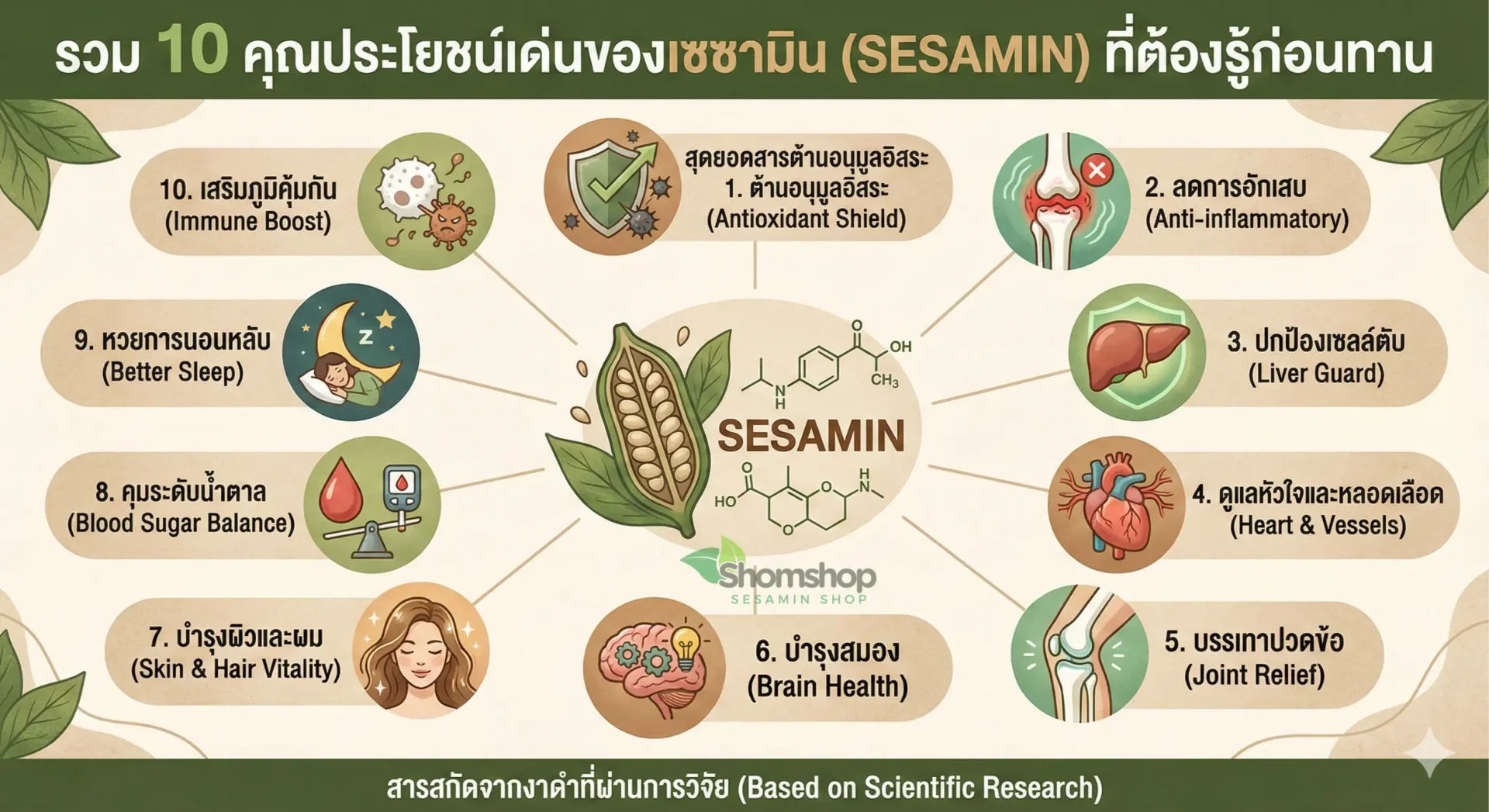 10 คุณประโยชน์เด่นของ "เซซามิน" ที่มีงานวิจัยรองรับ