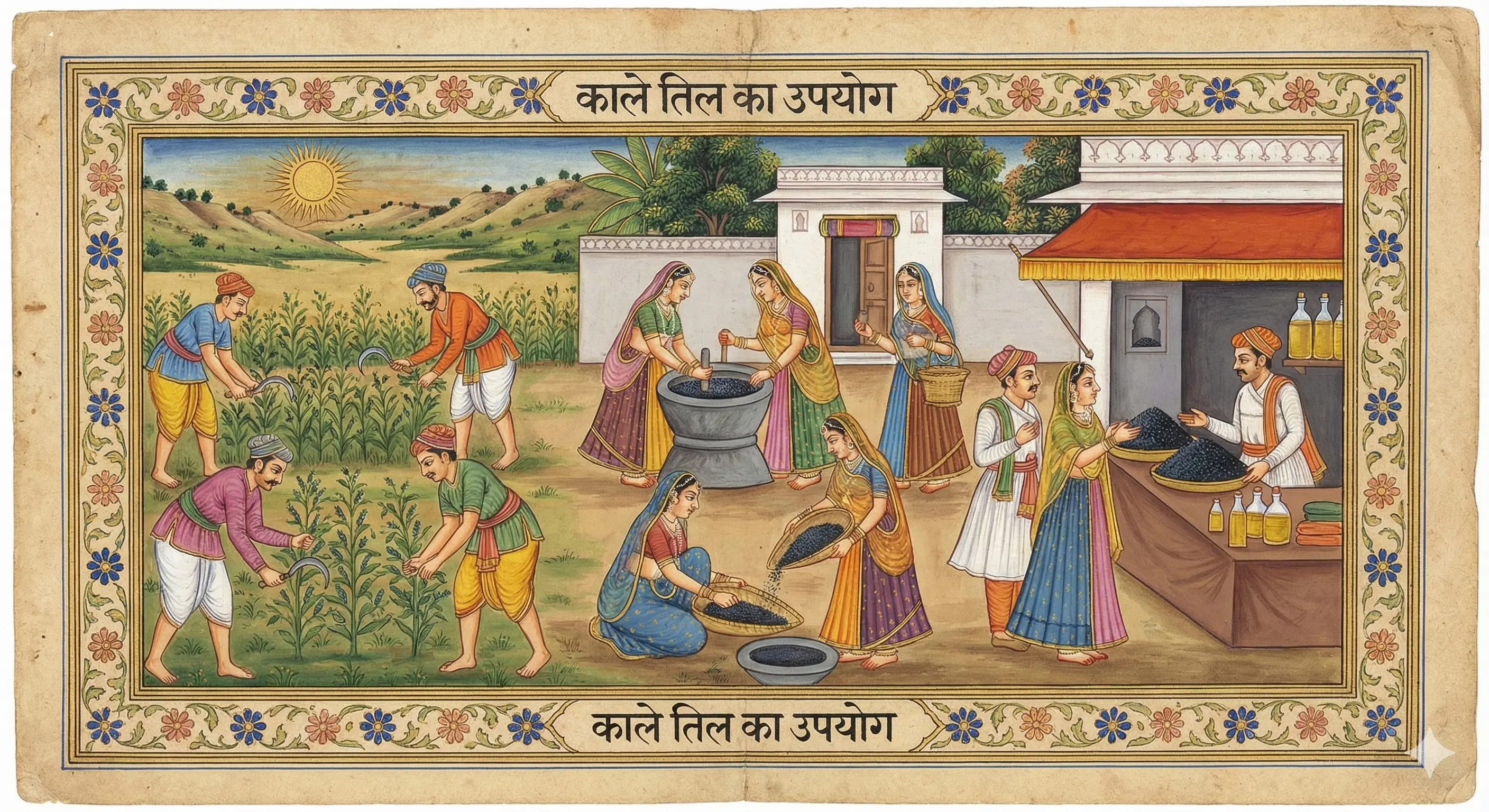 ในศาสตร์อายุรเวทของอินเดีย: งาดำและน้ำมันงาเป็นส่วนประกอบสำคัญในการทำยาและการบำบัดหลายแขนง ถูกใช้เพื่อเสริมสร้างความแข็งแรง, เพิ่มพลังงาน, และรักษาความสมดุลของธาตุในร่างกาย